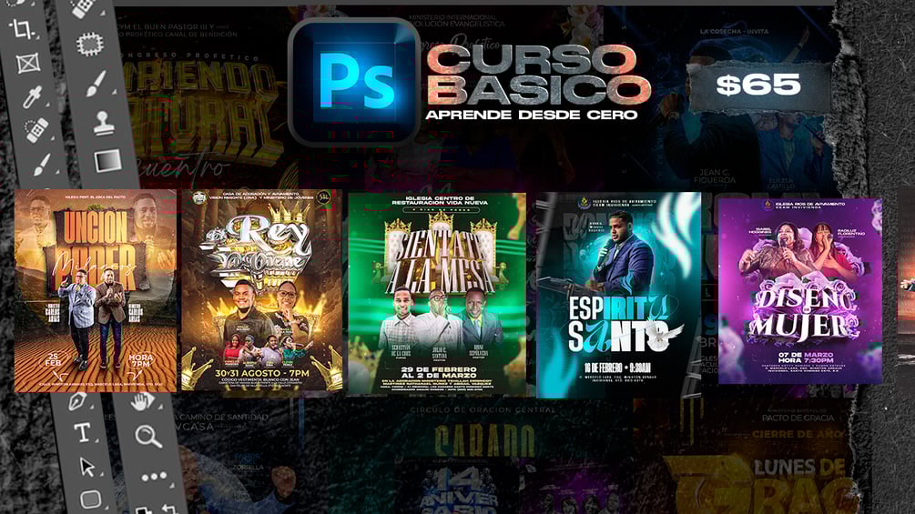 En este curso aprenderas ocmo realizar flyers para iglesias utilizando Photoshop y otras herramientas para complementar tu arte.